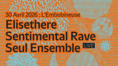 Jeudi 30 Avril 2026 21h INFOS (aller à la page de l'évènement) Partager Partager sur Facebook Partager sur Twitter Partager sur Google Plus Billets Sur place PAF: 8,00 € Elisethere Selecta / Bruxelles Sentimental Rave techno / RAW / Paris/Mars Seul Ensemble Trip-hop to Noisy Tribe / Marseille Events